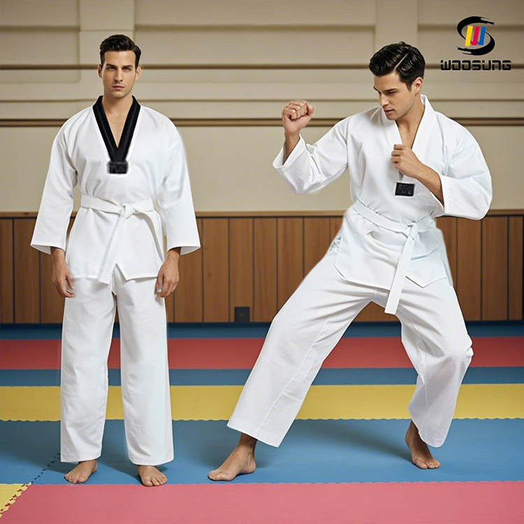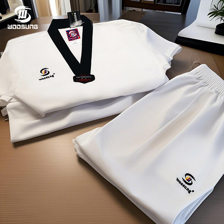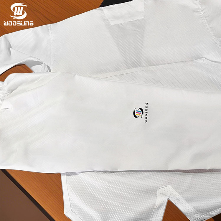 ウソン メッシュ付きテコンドーユニフォーム (中国メーカー/サプライヤー) は、プロのトレーニングや競技環境向けに特別に設計された高性能ユニフォームです。重要なエリアに通気性の高いメッシュパネルを組み込み、コットンとポリエステルの混紡生地とアスレチックカットを組み合わせることで、このユニフォームは快適さ、吸湿発散性、耐久性の優れたバランスを実現しています。