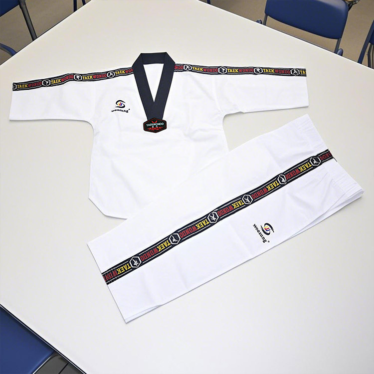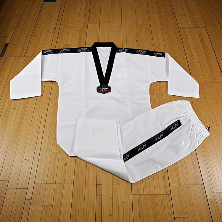 縞模様のテコンドー道着のパンツのデザインも快適さと実用性のバランスに重点を置いています。安全で便利な巾着ベルトのデザインは、個人のニーズに応じて簡単に調整でき、トレーニング中に安定したフィット感を確保できます。特別に強化された膝部分はトレーニング中の摩擦や摩耗に効果的に抵抗し、肌の隅々まで保護します。基本的なアクションの練習でも、激しい実戦での対決に参加する場合でも、このユニフォームはオールラウンドな快適さと保護を提供します。