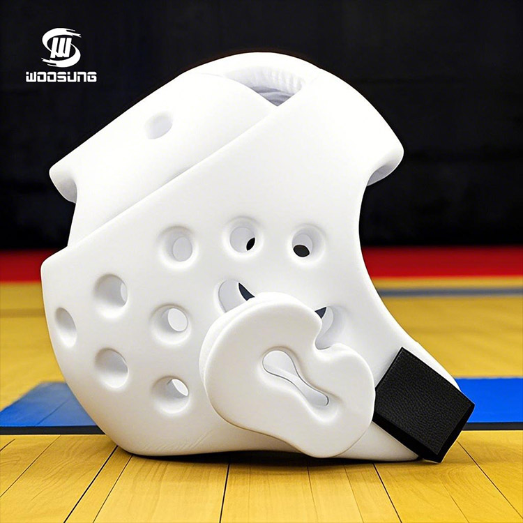 1. テコンドーホワイトヘッドガードは高品質の素材で作られており、高密度フォームパッドが付いており、優れた衝撃吸収性能を備えています。