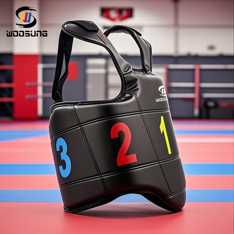 WOOSUNG のこのティケン テコンドー チェスト ガードは、高密度のクッション性のある裏地を備えた頑丈で耐久性のある素材で作られています。 It can effectively absorb impacts and reduce the risk of injury, allowing beginners to let go of their worries and focus on building a solid foundation, thus feeling at ease as they embark on their Taekwondo journey.